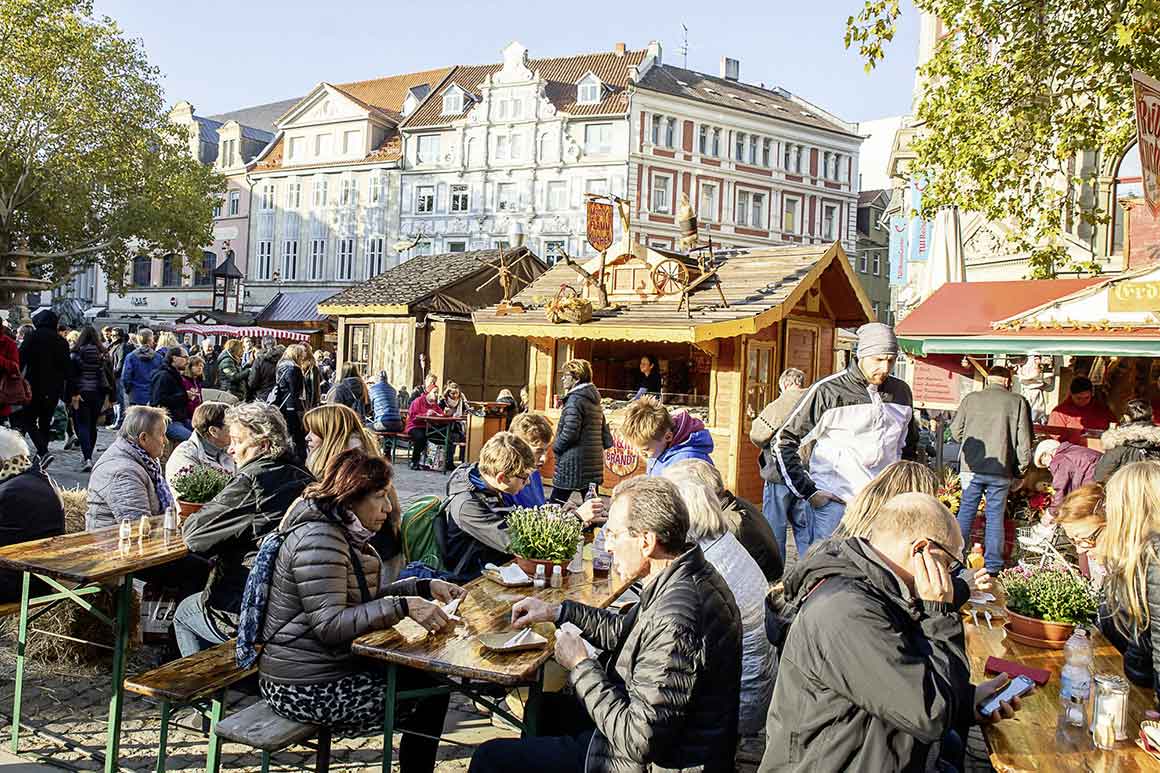 Köstlichkeiten mit Braunschweiger Würze: Am 5. und 6. November lädt die mummegenussmeile dazu ein, auf dem Kohlmarkt und dem Platz der Deutschen Einheit ein Stück Braunschweiger Geschichte zu schmecken. Als Exportschlager der Löwenstadt erlangte die doppelte Segelschiff-Mumme bereits im Mittelalter internationale Bekanntheit. Aufgrund seines hohen Nährwertes und der langen Haltbarkeit war das ehemals alkoholhaltige Bier ein idealer Proviant für die Seefahrt. Heute verfeinert der nicht-alkoholische Malzextrakt zahlreiche Speisen und Getränke, die Besucherinnen und Besucher der mummegenussmeile probieren können.