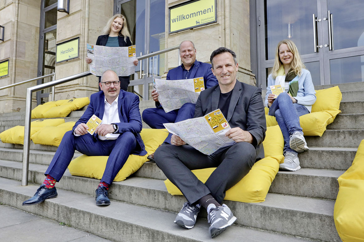 Freuen sich über den neuen Kulturstadtplan: (v. l. n. r.) Karsten Ziaja (1. Vorsitzender des ATB), Franziska-Luise Brunke (Projektleitung Braunschweig Stadtmarketing GmbH), Carsten Graf (PSD-Bank), Dr. Ulf Hilger (Kulturinstitut und Vertreter der Kulturschaffenden), Nina Bierwirth (Leitung ATB-Geschäftsstelle).
